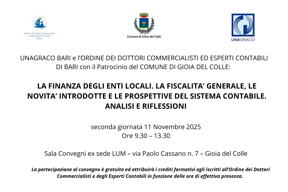 LUOGO: Sala Convegni ex Sede LUM – Via Paolo Cassano n. 7 – Gioia del Colle (BA)
